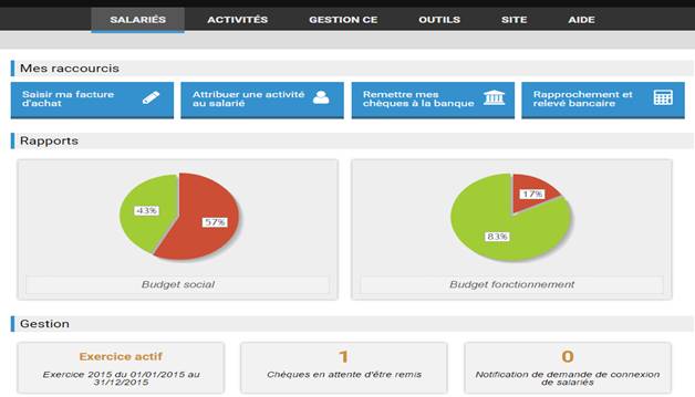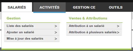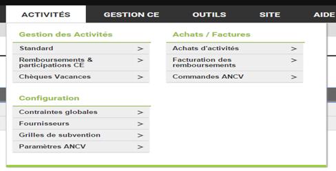 Le menu activité : Gestion de tous types d’activités du CE en direction des salariés.