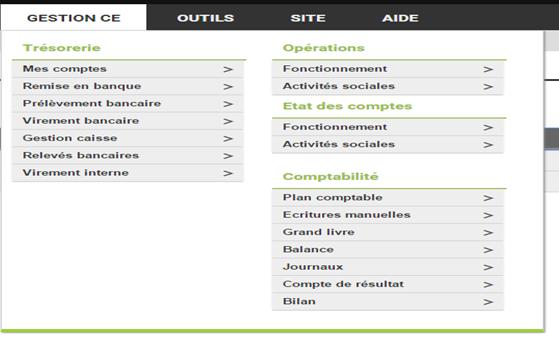 Le menu Gestion CE : Gestion comptable du comité d’entreprise.