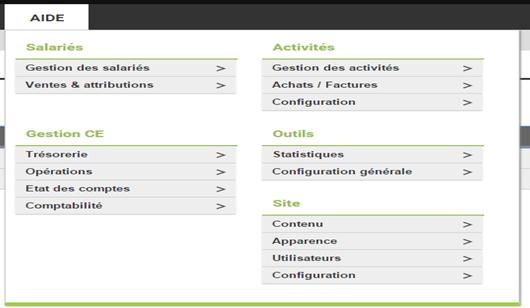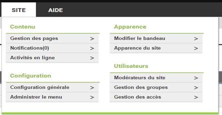Le menu Site : Ensemble de fonctions de configuration, d’administration et de gestion du site Internet du comité d’entreprise.