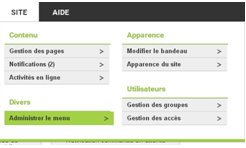 Pour configurer le menu, sélectionnez « SITE » puis « ADMINISTRER LE MENU »