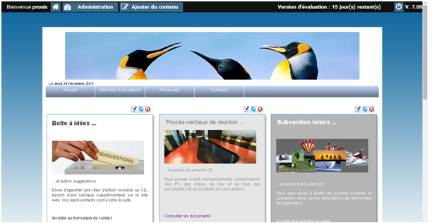 Le site Internet est accessible via les menus accueil, activités, annonces etc. … L’administrateur pourra alors mettre en ligne les informations selon leur place dans les différents menus pour une meilleure classification et ne seront accessibles que par les utilisateurs ayant un accès (login et mot de passe).