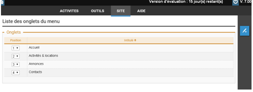 ou d’en modifier l’ordre en changeant le numéro dans la colonne position. Le numéro 1 apparaîtra en premier dans le menu général et ainsi de suite.