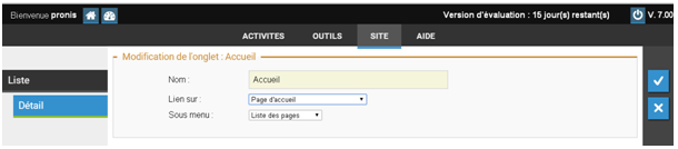 Vous pourrez dès lors créer des accès vers d’autres pages directement. Il faudra penser à valider chacune de vos actions.